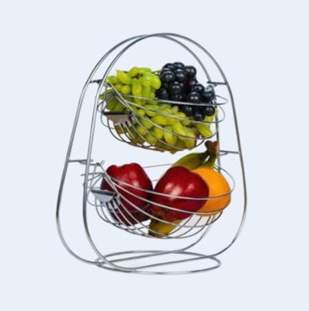 - MODERN DESIGN: Elegant 2-tier swinging fruit basket with curved stainless steel construction provides an attractive countertop storage solution
