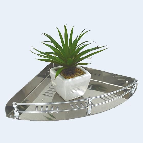 - VERSATILE DESIGN: Corner-mounted bathroom shelf perfect for organizing toiletries, shampoo bottles, and other bathroom essentials with a sleek stainless steel construction