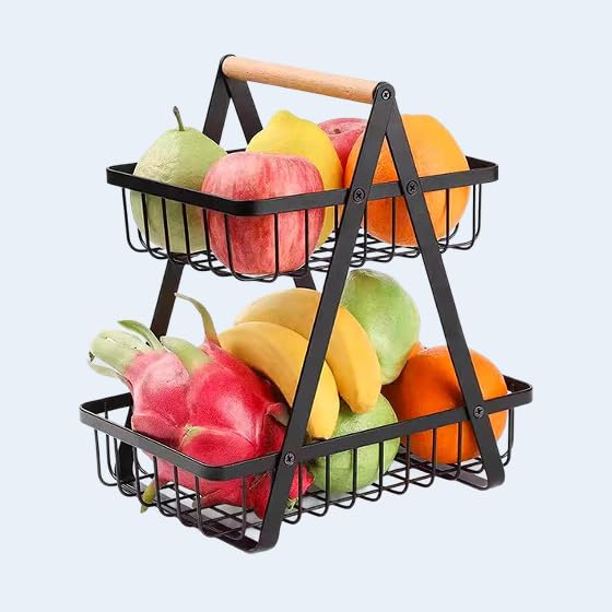 - MULTIFUNCTIONAL RACK: This easy to carry compact double hammock shelf is a perfect functional helper to neatly store not only your fruits and veggies but also bread, snacks, or, household items, toys, tools, and more