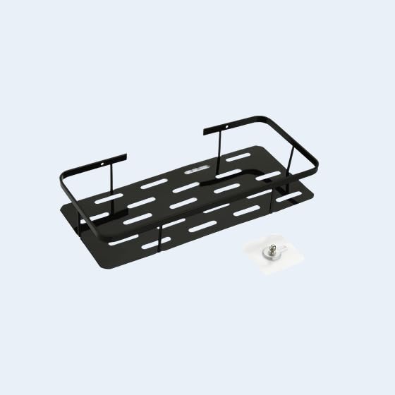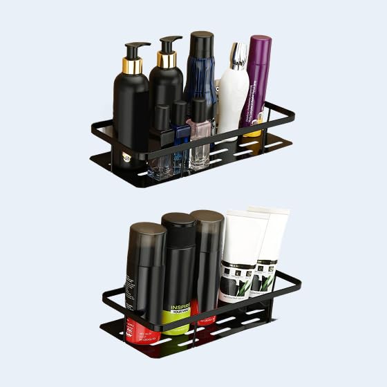 Platina Iron Carbon Steel Bathroom Shelf, Black Wall-Mounted Storage Rack, Modern Organizer for Toiletries