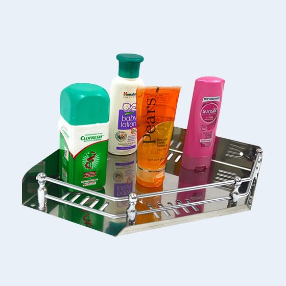 - PREMIUM CONSTRUCTION: Made of high-quality stainless steel with a polished finish, this corner shelf combines durability with elegant style for bathroom organization